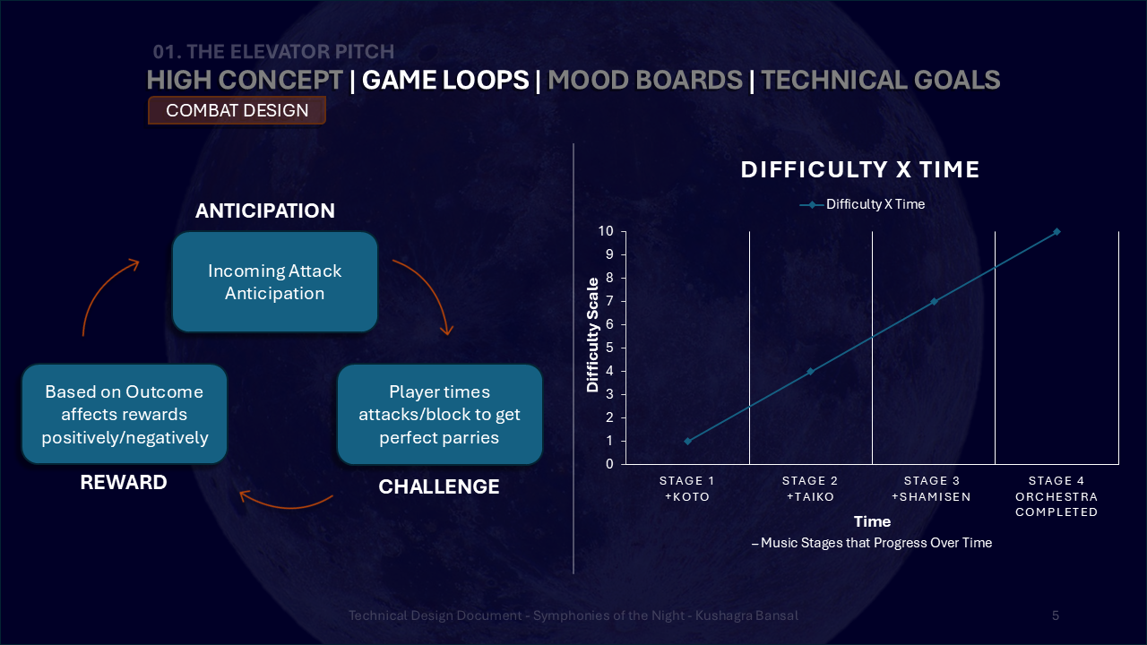 Part of my final year project. An Action-Adventure game set in a cross-culture fantasy world where its combat takes center stage; listen close as they might tip the scales in an instant; as players will battle in musical fights where the sound sings it all.